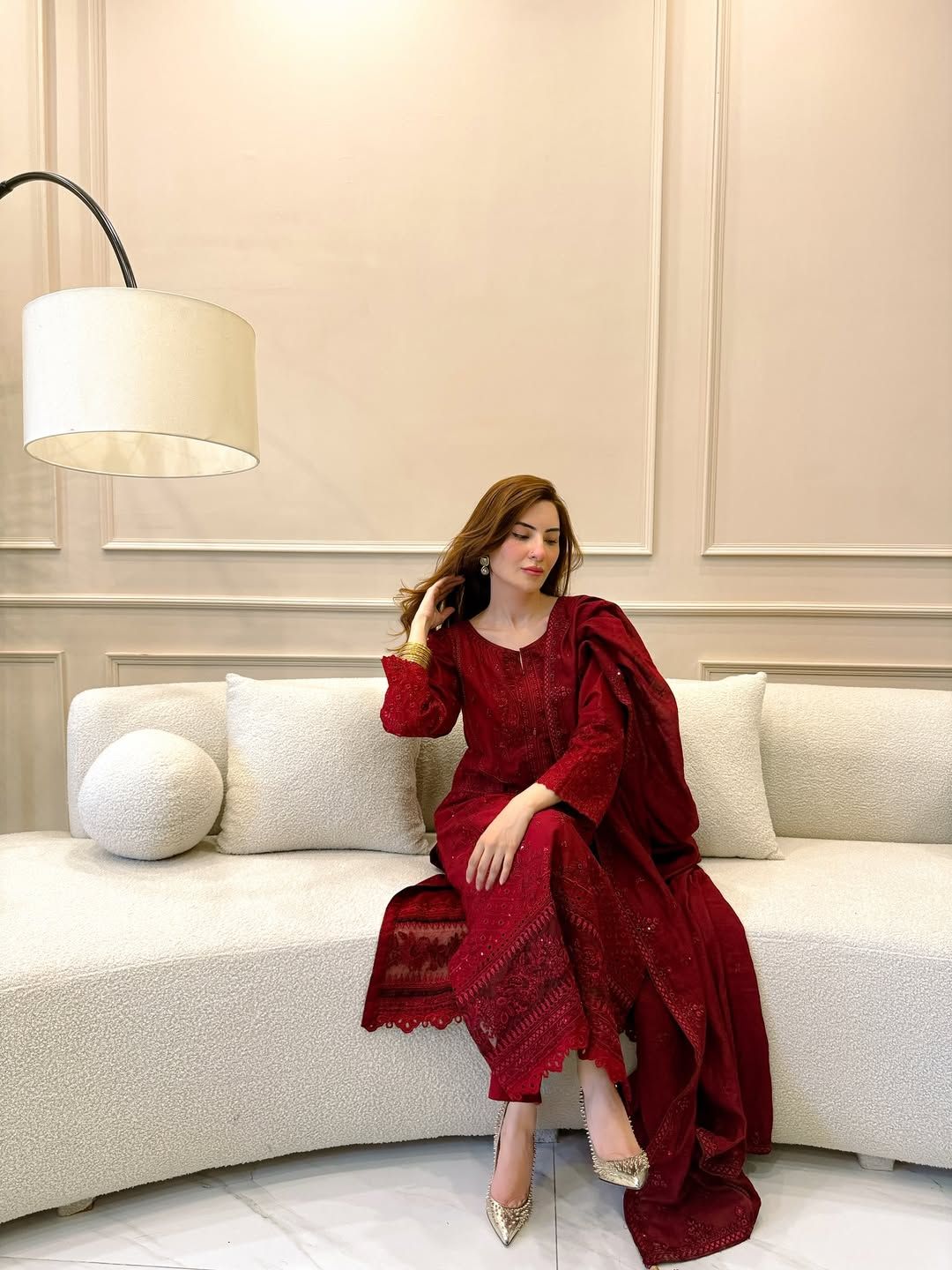 Presenting the Gulnaar Zarkash collection, a luxury Zari work 3-piece suit that is perfect for weddings and formal events.