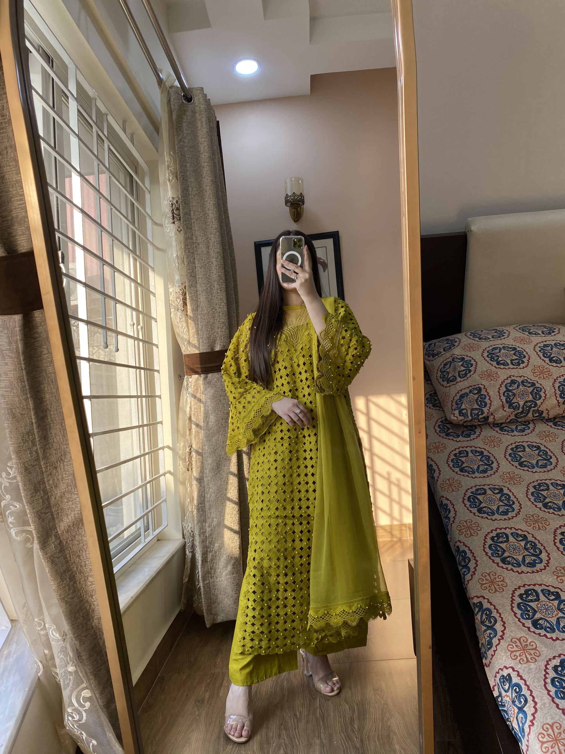 Dupatta: Chiffon with dual-side Pearl lace borders.